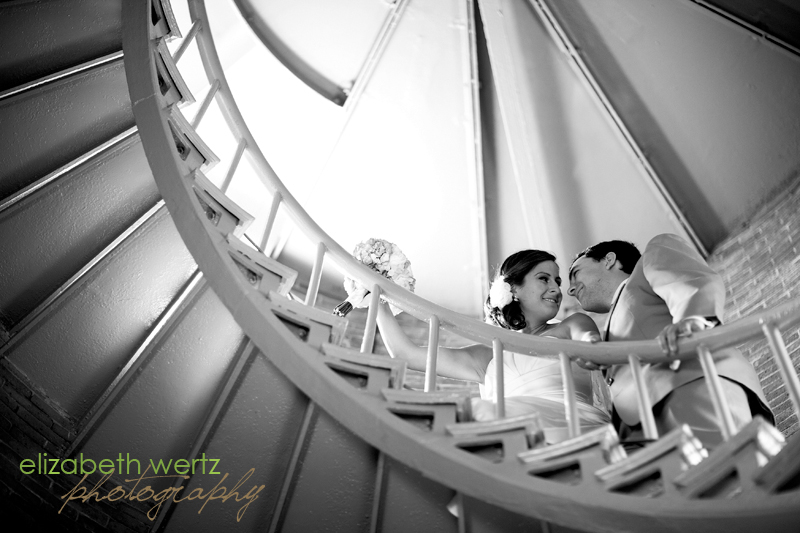 Meredith both called and emailed me one morning over a year ago, eager to find out if I was booked for her wedding date--and as soon as I spoke with her, and heard the excitement in her voice, I just knew we were going to hit it off. We met up for coffee soon after, and the meeting was a first for me: within a half hour of chatting, they signed with me, and we went immediately out into the streets of Portsmouth for their engagement session. They are up for anything, and oh my goodness, to see Sean look at Meredith! He smiles with his eyes, and is so funny and genuine, that you can't help but think the world is a wonderful place in his presence. And Meredith is so tiny and lovely, that Sean just sweeps her up in his arms, and it is so sweet to see. Their wedding was so well thought out and meaningful. I was fortunate to have the help of my friend and talented photographer, Mat Gardella, who was an enormous help, as well as being positive and uplifting and keeping me laughing all day (even when one of my cameras kicked it in the middle of the wedding). We started with their adorable first look on the steps of the lovely Wentworth by the Sea Hotel, and then hopped in a trolley to go to the Portsmouth Harbor Lighthouse, located at historic Fort Constitution. We had clearance to enter the fort, and I fell in love with the grounds, and especially the inside of the lighthouse, with its brick walls and swirling staircase that made me feel like we were inside a seashell...This oceanside theme was present in every detail of the day: the ceremony overlooking the harbor, the tables each named after a different lighthouse in New England, the two tiny adirondack chairs on top of the cake, and at the base, their initials drawn in sand....But best of all was just being in their presence, seeing Sean beam at his bride, and seeing their marriage off to such a wonderful start. Congratulations M & S, you two are the best, and I hope you enjoy your first peek at the photos...